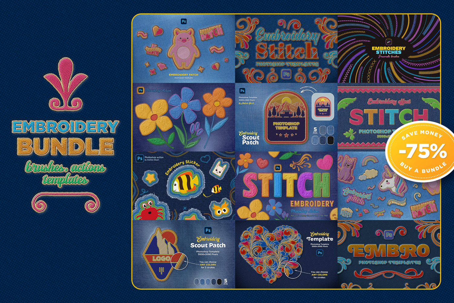 Embroidery Photoshop Bundle Stitch Photoshop Embroidery Mockup Embroidery Logo Embroidery Brushes Embroidery Photoshop Stitch Brushes Embroidery Procreate Stitch Procreate
