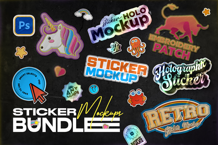 • Holographic Sticker Mockup Vol.1 & Vol.2: Stunning holographic effects.