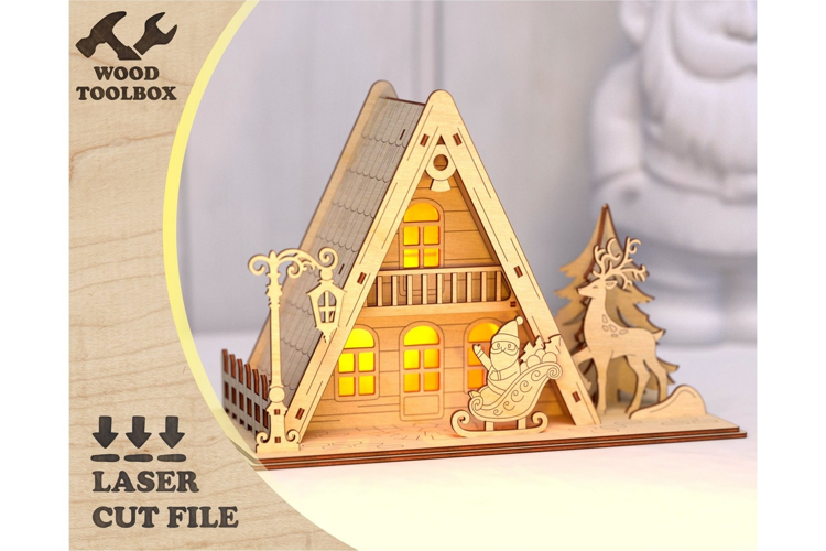 Laser Cut Christmas House SVG | A-Frame Cabin Light-Up Xmas example image 1