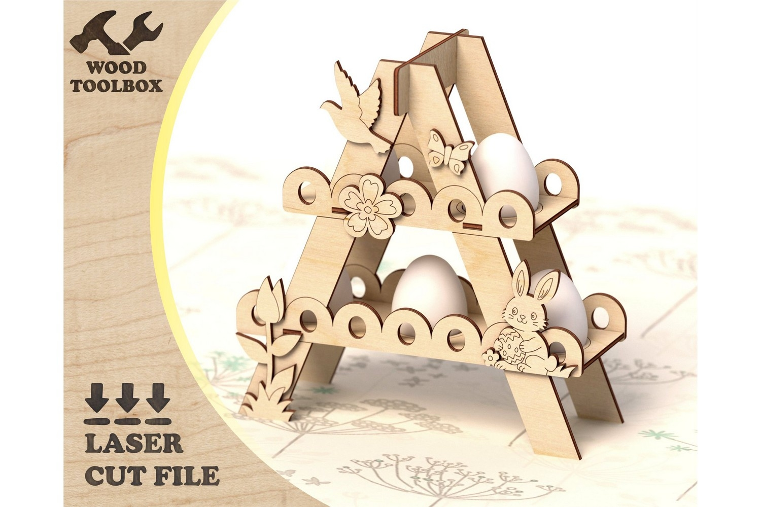 🐣 Digital laser cut file for a tiered Easter egg holder with cute bunny details. Easy and fast to assemble — perfect for Easter decor, gifts, and holiday displays. Instant download.