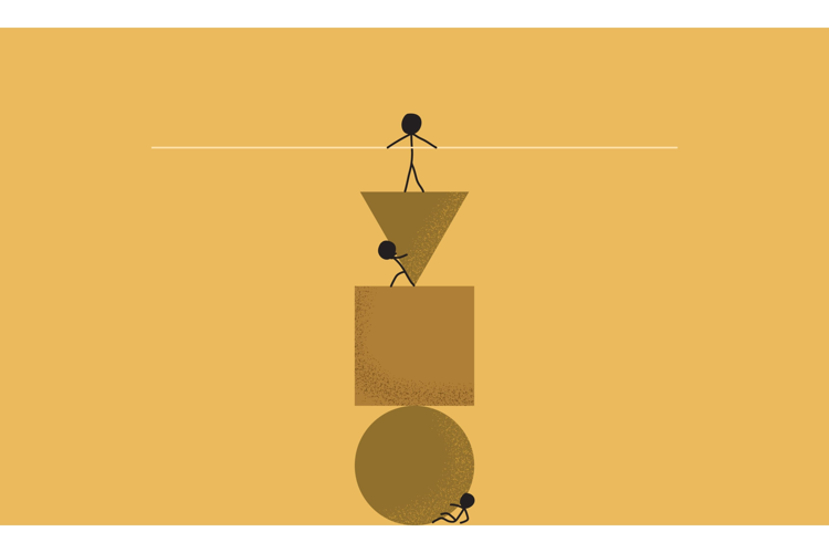 Hand-Drawn Stick Figure Illustration of a Group of People Trying and Working Together to Balance Objects of Different Shapes