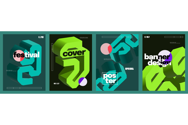Simple and Abstract Poster Template Set with 3D Geometric Shapes