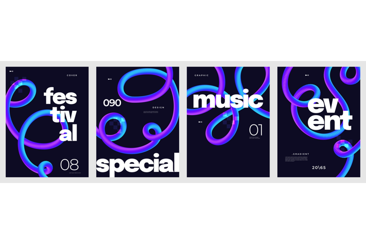 Abstract and Modern Poster Design Set with 3D and Colorful Gradient Curved Lines