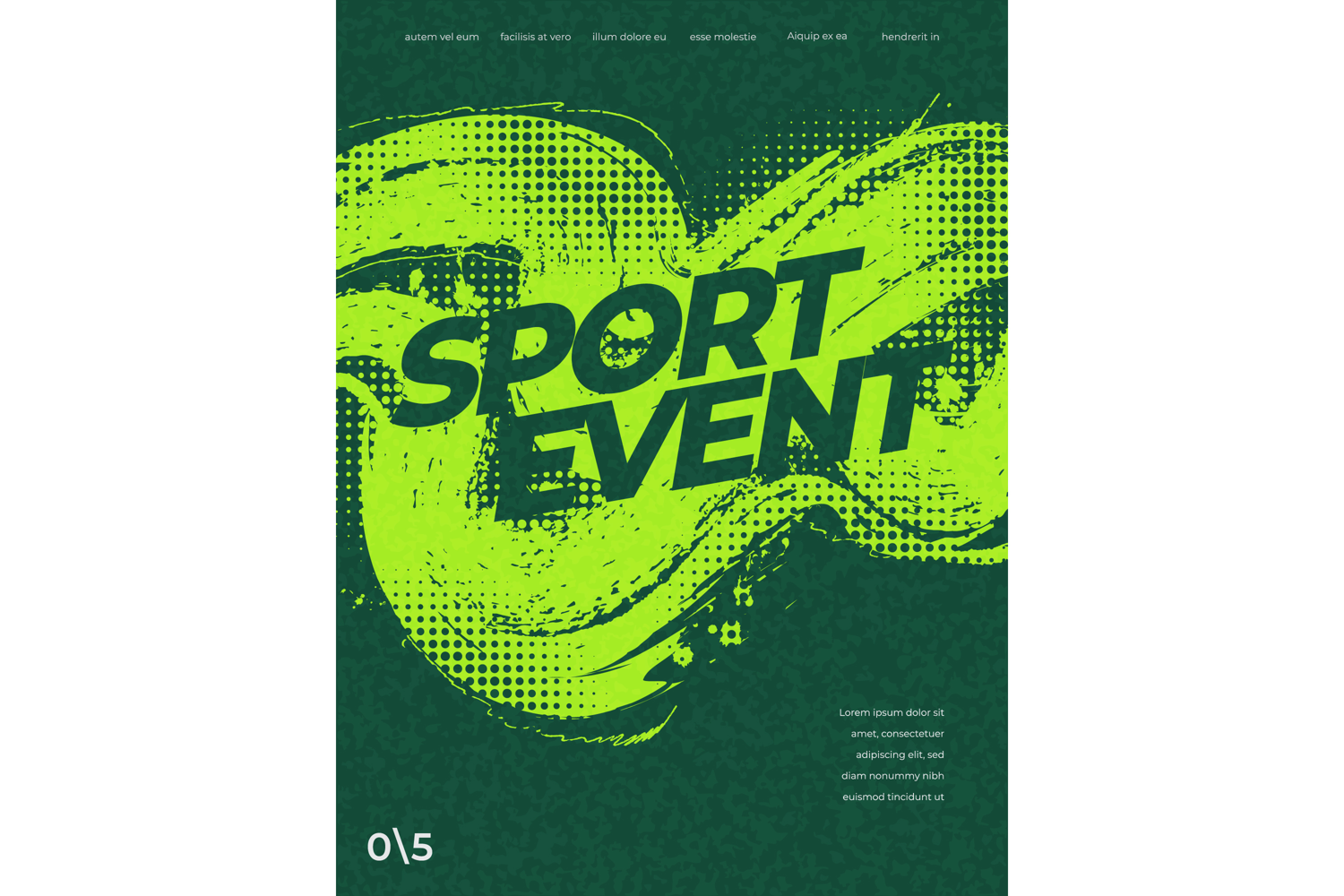 Abstract Sport Cover or Poster Design with Lime Green Brush Strokes and Halftone Effect