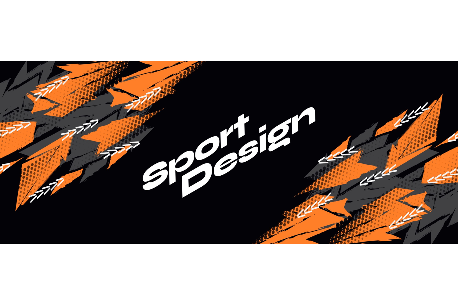Abstract and Dynamic Sport Background Design with Orange and Gray Brush Strokes, Arrow Shapes and Halftone Texture