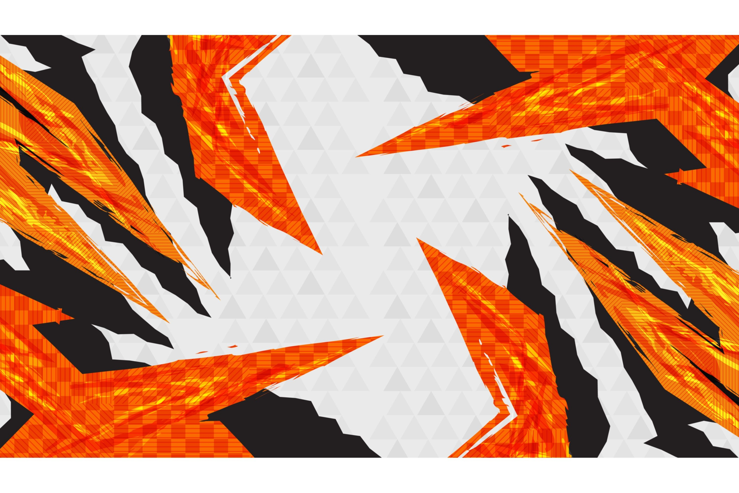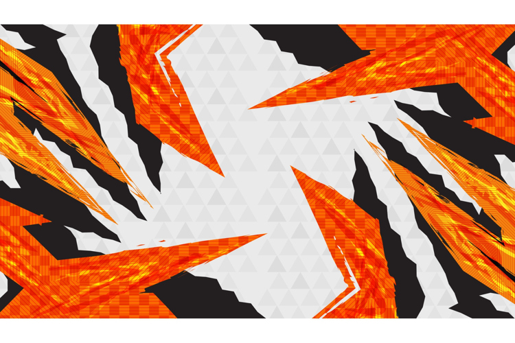 Modern and Abstract Sport Background with Orange Flame Shapes and Triangle Patterns
