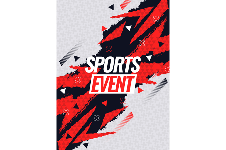 Modern and Energetic Sport Poster Design with Black and Red Grunge Brushstrokes and Triangle Pattern