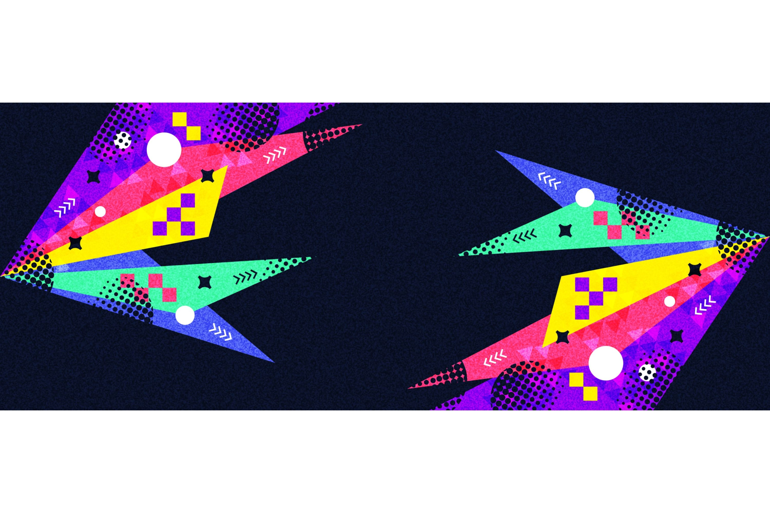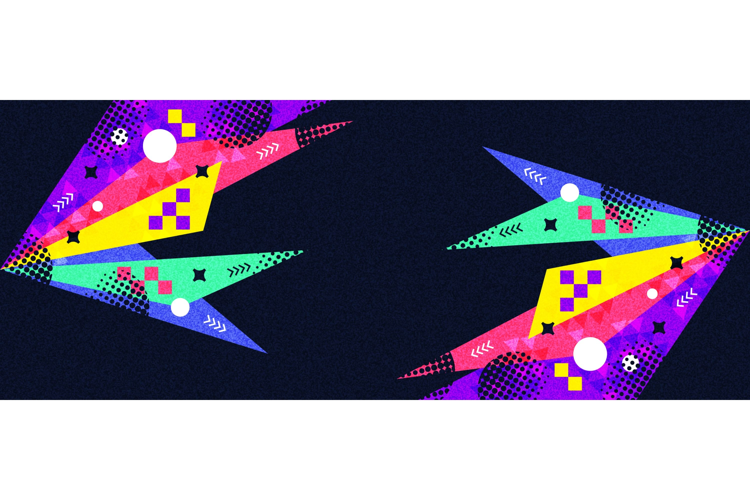 Retro Geometric Banner Dynamic Colorful 80s Abstract Background Halftone Memphis