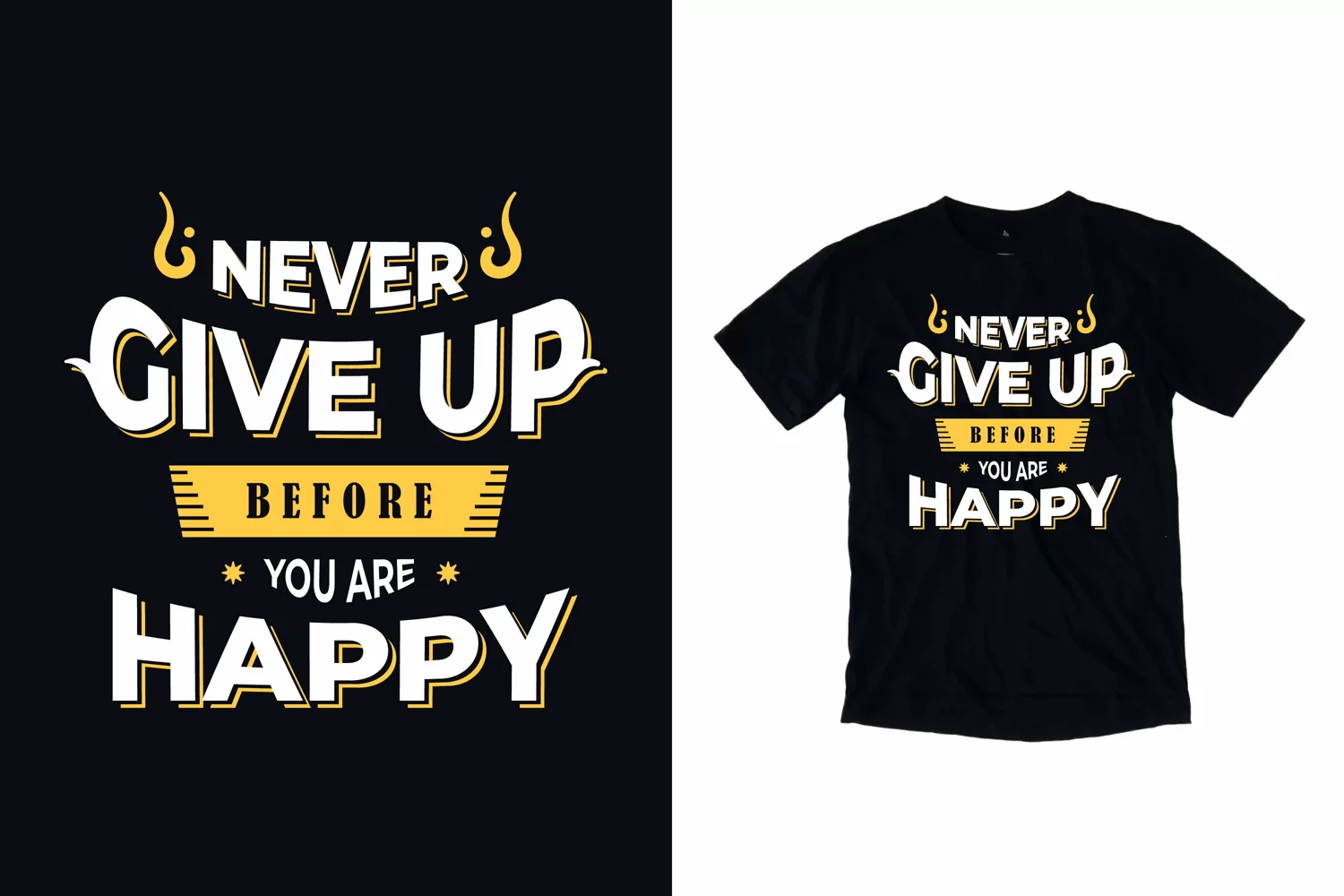 Never give up before happy modern quote t shirt design example image 1