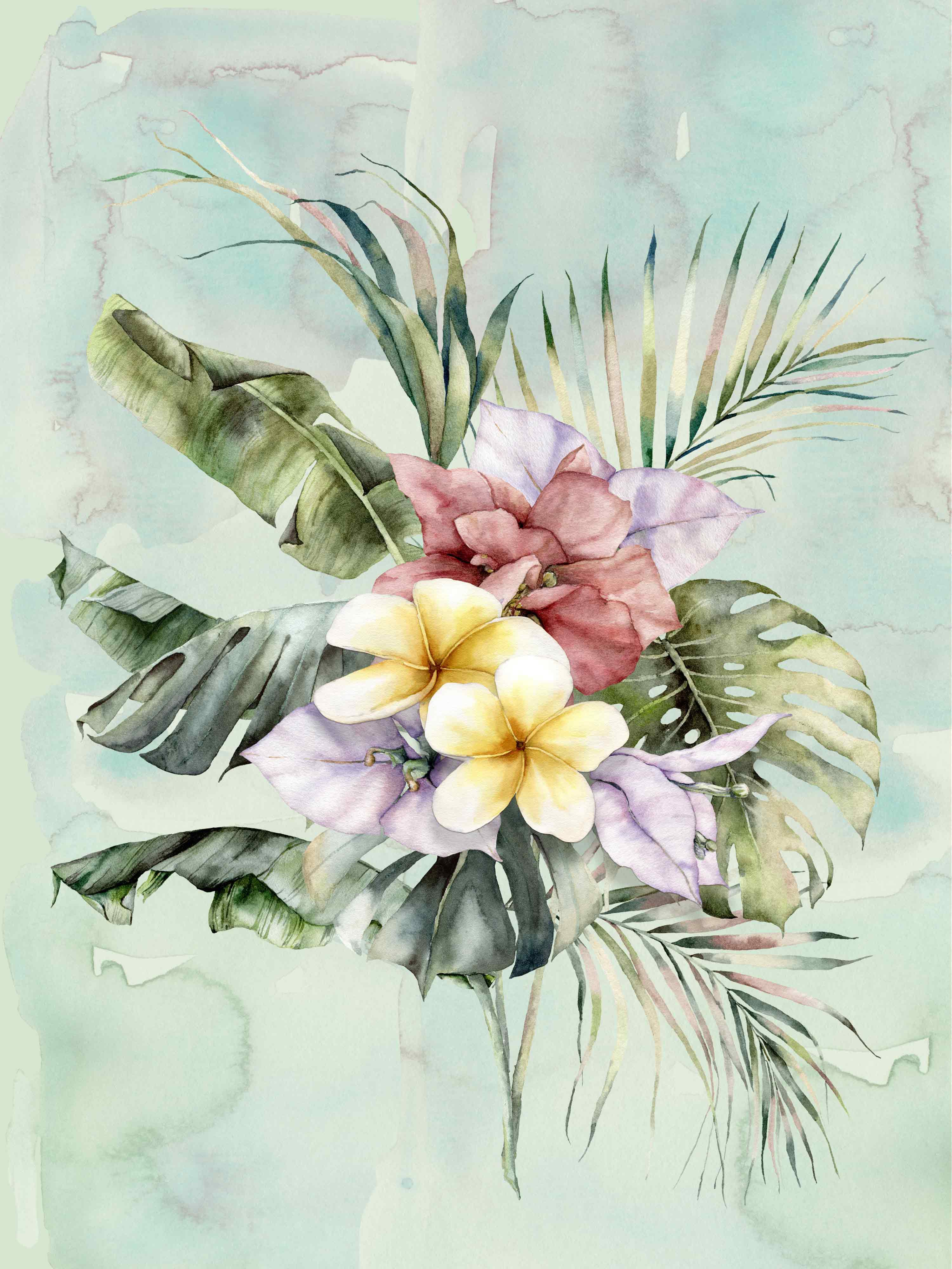 Fragile peach and creamy orchids, King and Queen proteas, huge leaves of monstera, graceful branches of tropical trees - all this you will find in this set. Tropical illustrations will help you in your projects - wedding invitations, branding, packaging design and even fabric creation.