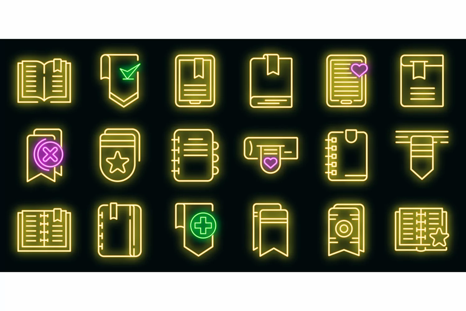 Bookmark icons set. Outline set of bookmark vector icons neon color on black. Formats: JPG, EPS, AI, PSD, PNG, AI
