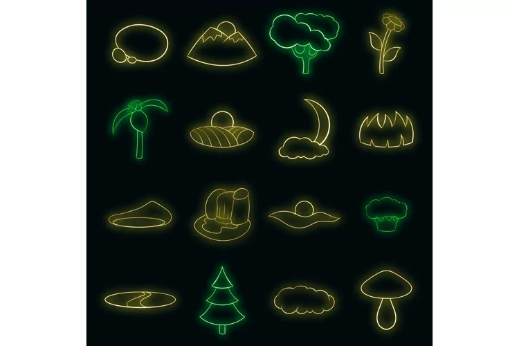 Cartoon Vector Nature Neon Icons Collection Set Isolated Landscape Land