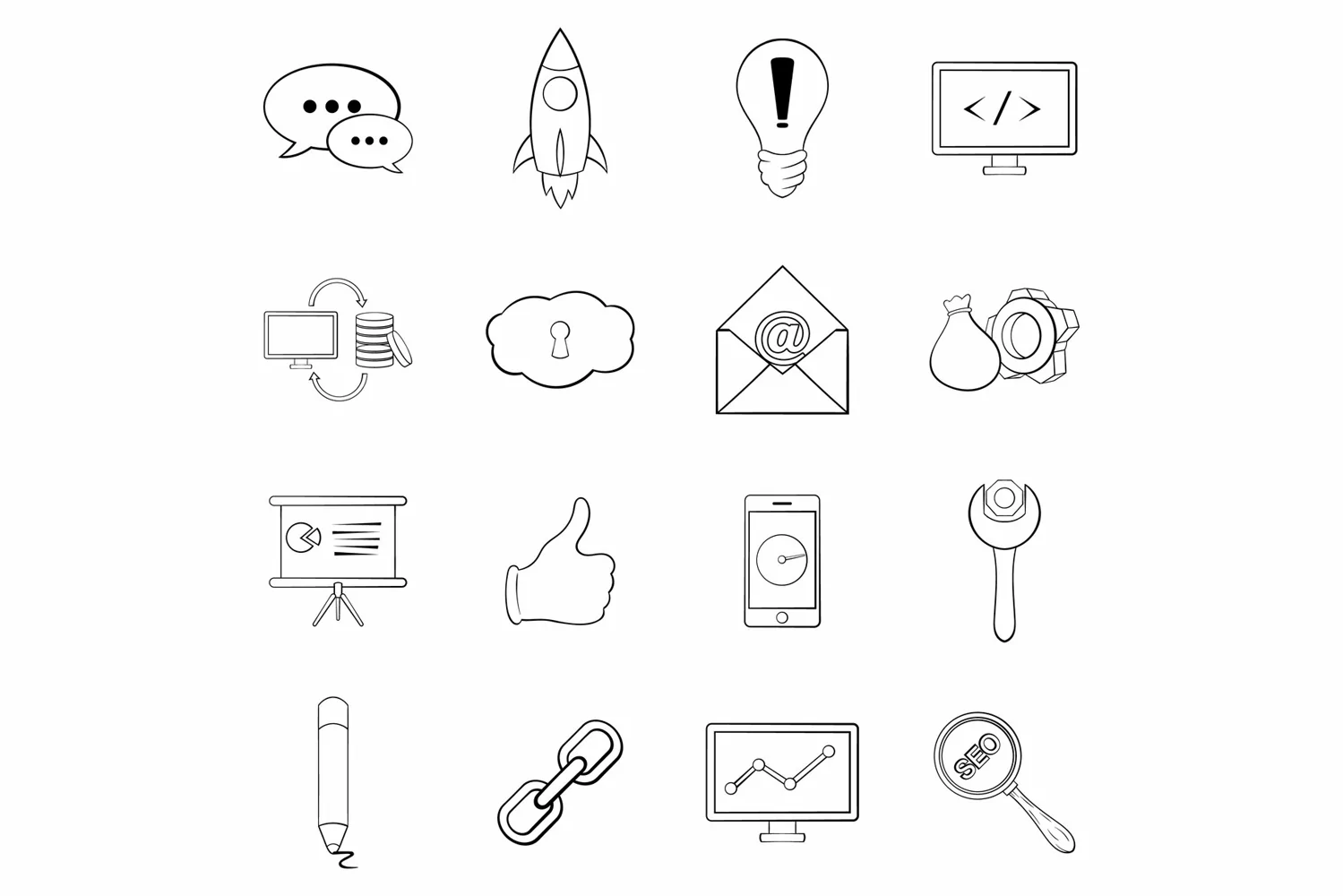 Line Thin Vector Outline Icons Collection Set Seo Marketing Isolated