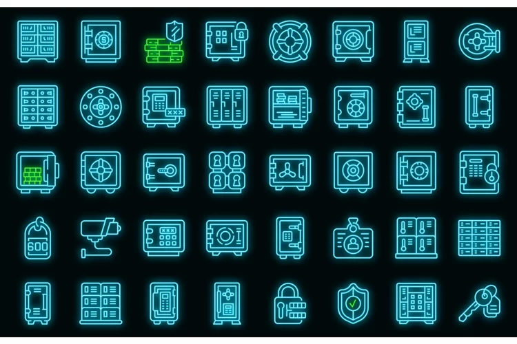 Deposit room icons set vector neon