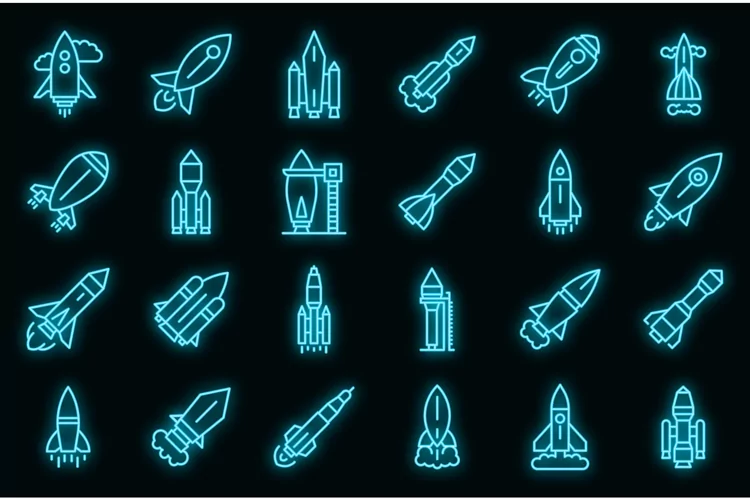Line Thin Vector Outline Black Neon Icons Set Isolated Spacecraft Launch