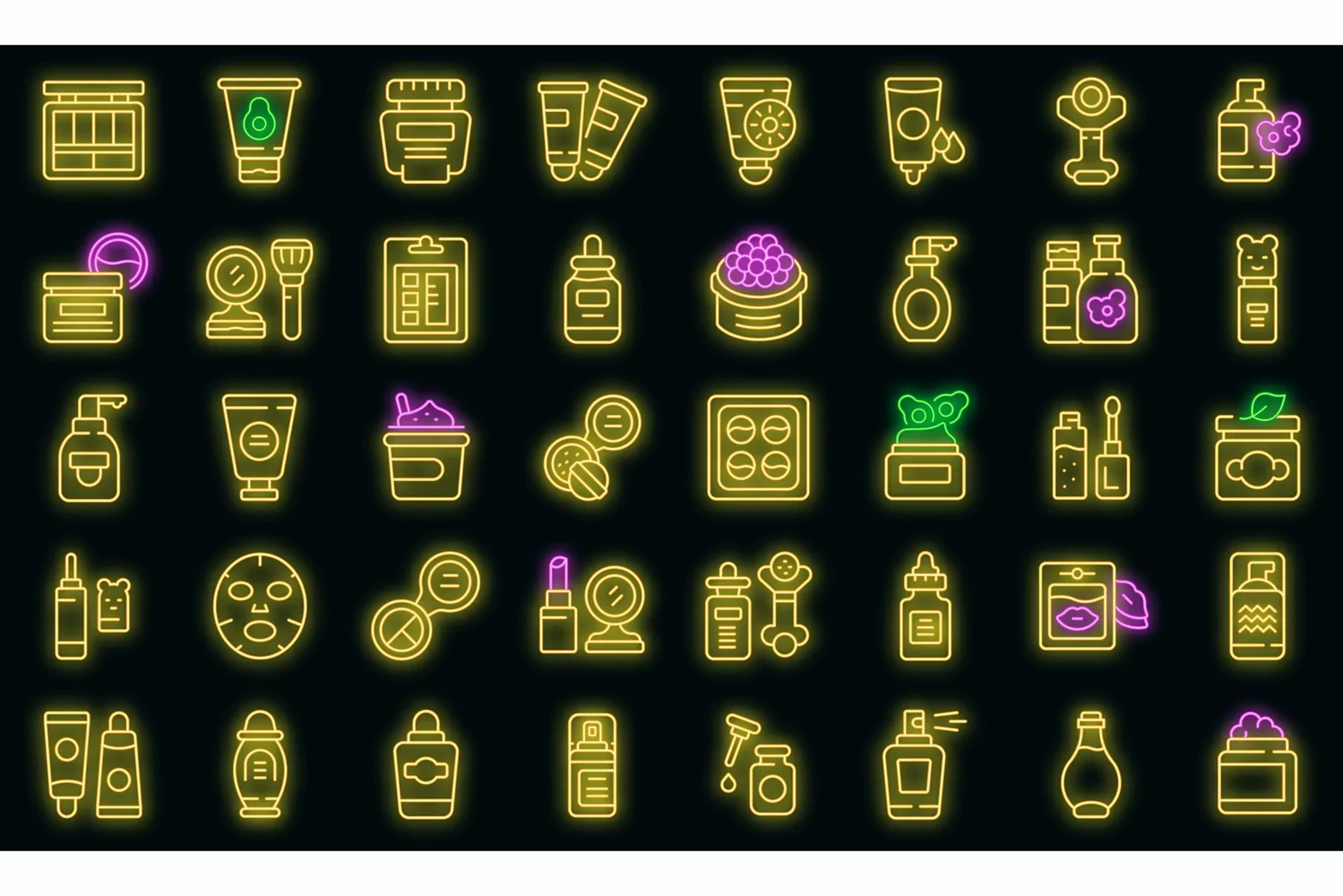 Korean cosmetics icon. Outline korean cosmetics vector icon neon color on black. Formats: JPG, EPS, AI, PSD, PNG, AI