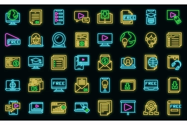 Free course icons set vector neon example image 1