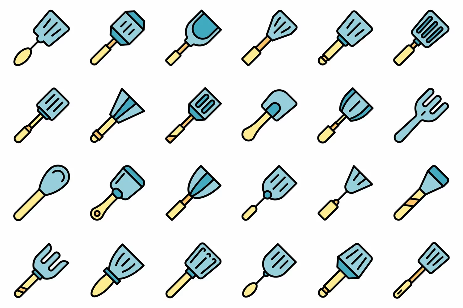 Line Thin Flat Vector Outline Color Icons Set Isolated Spatula