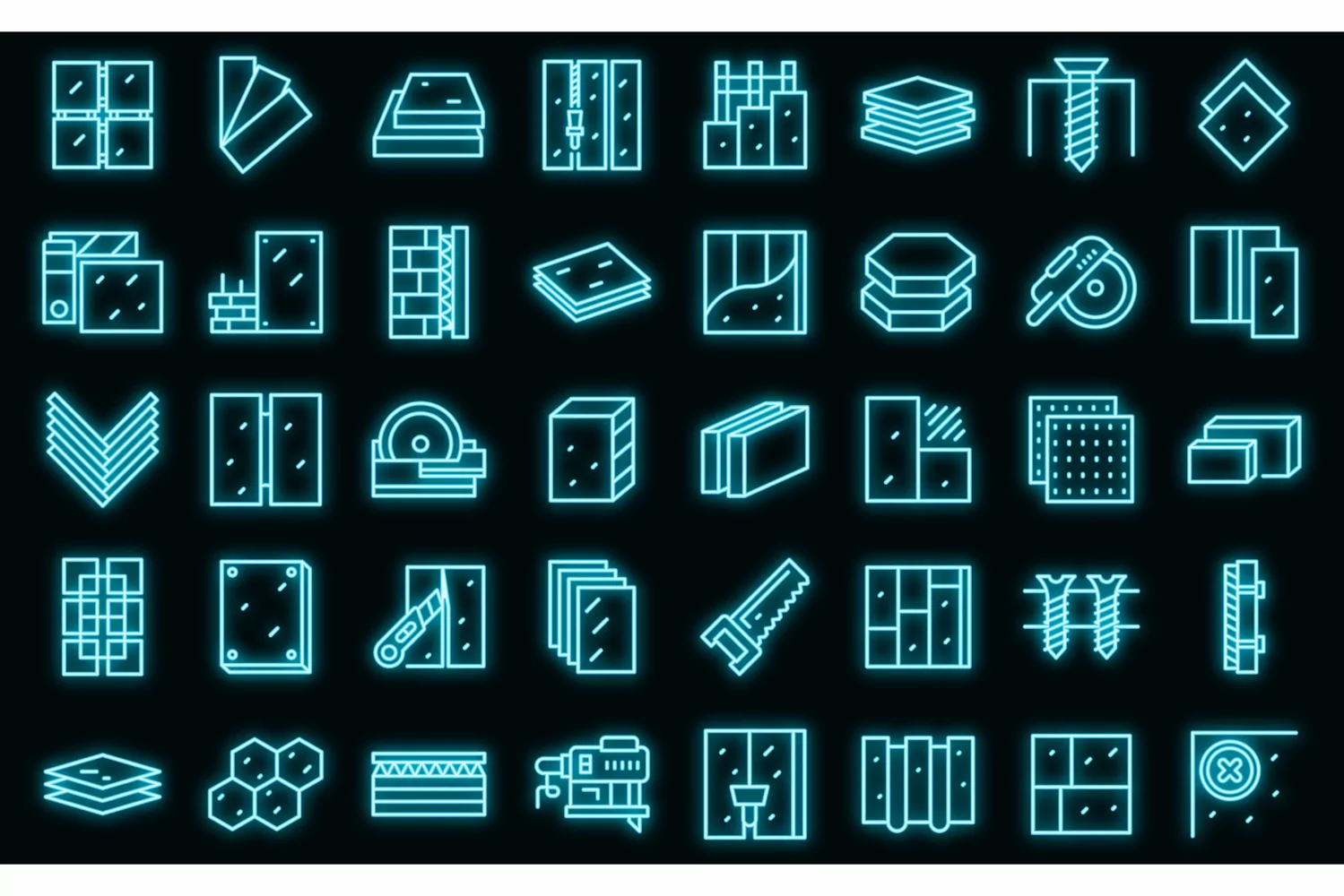 Drywall icons set outline vector. House plasterboard. Brush construction. Formats: JPG, EPS, AI, PSD, PNG, AI