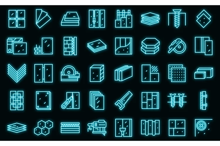 Line Thin Vector Outline Black Neon Icons Set Isolated Drywall