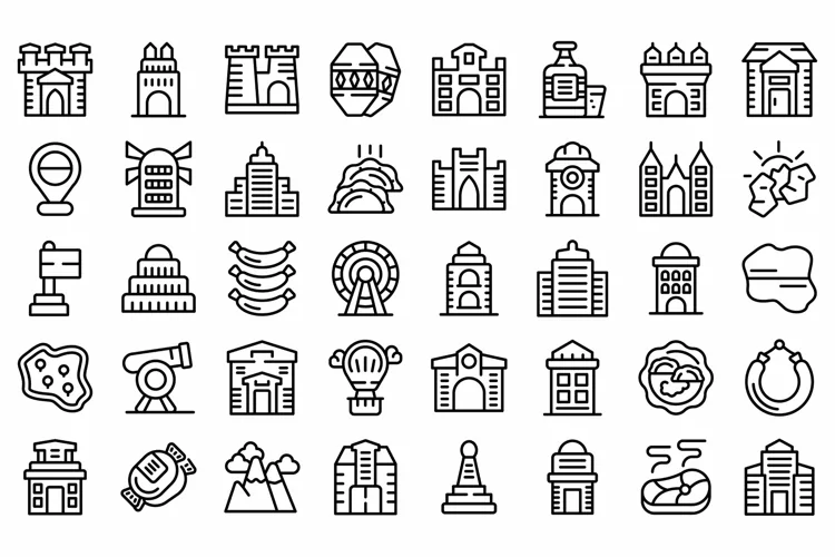 Line Thin Vector Outline Black Icons Set Isolated Poland Krakow