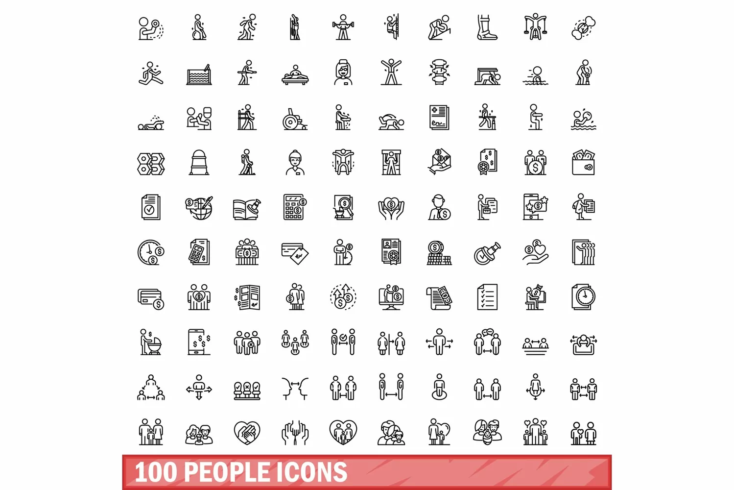 100 people icons set, outline style example image 1