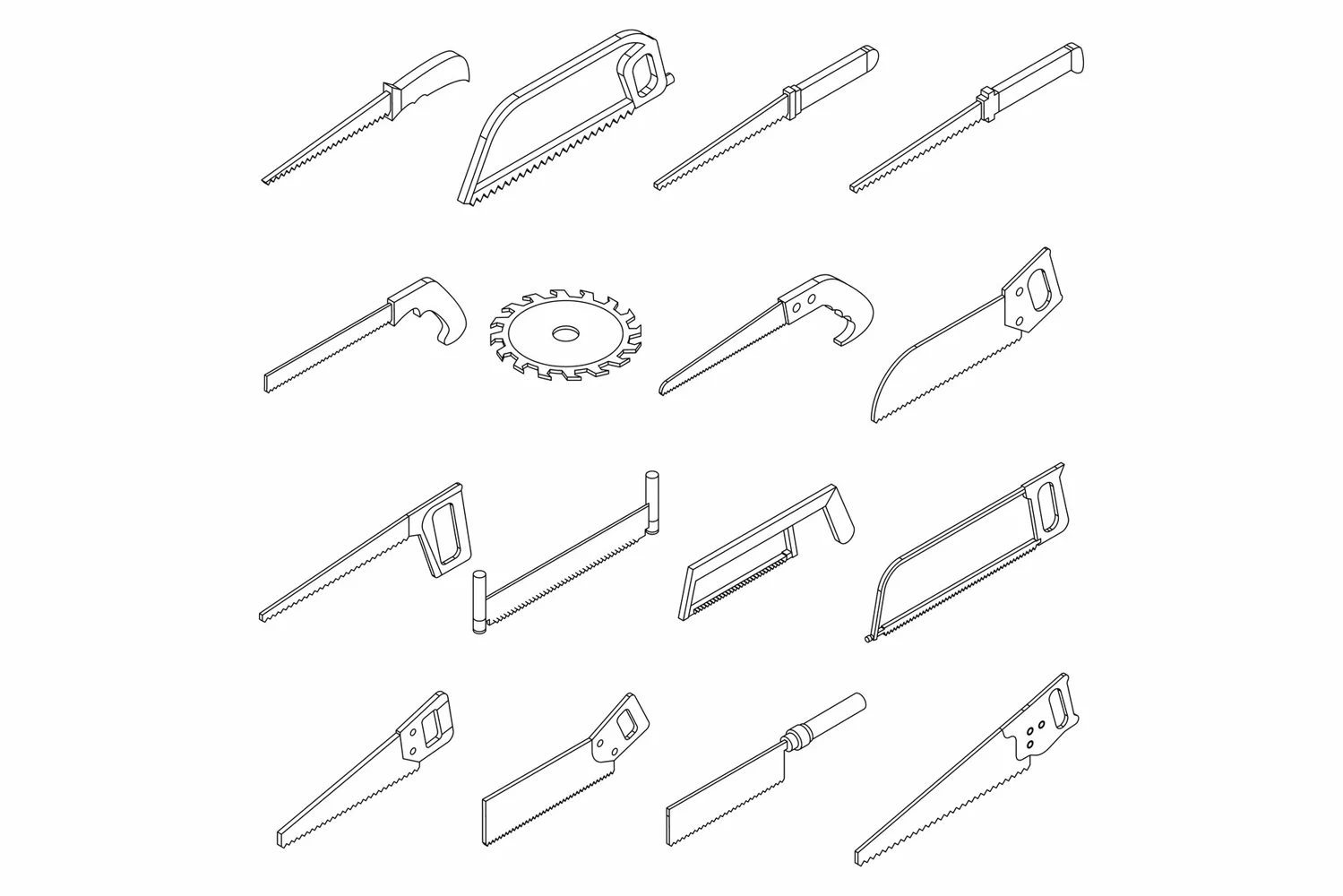 Line Thin 3d Vector Outline Icons Set Saw Circular Isometric