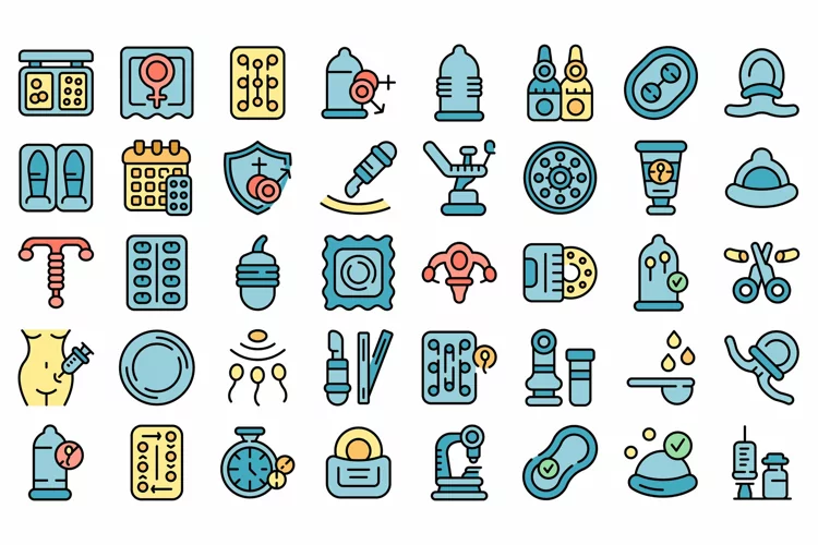Line Thin Flat Vector Outline Color Icons Set Isolated Contraceptives