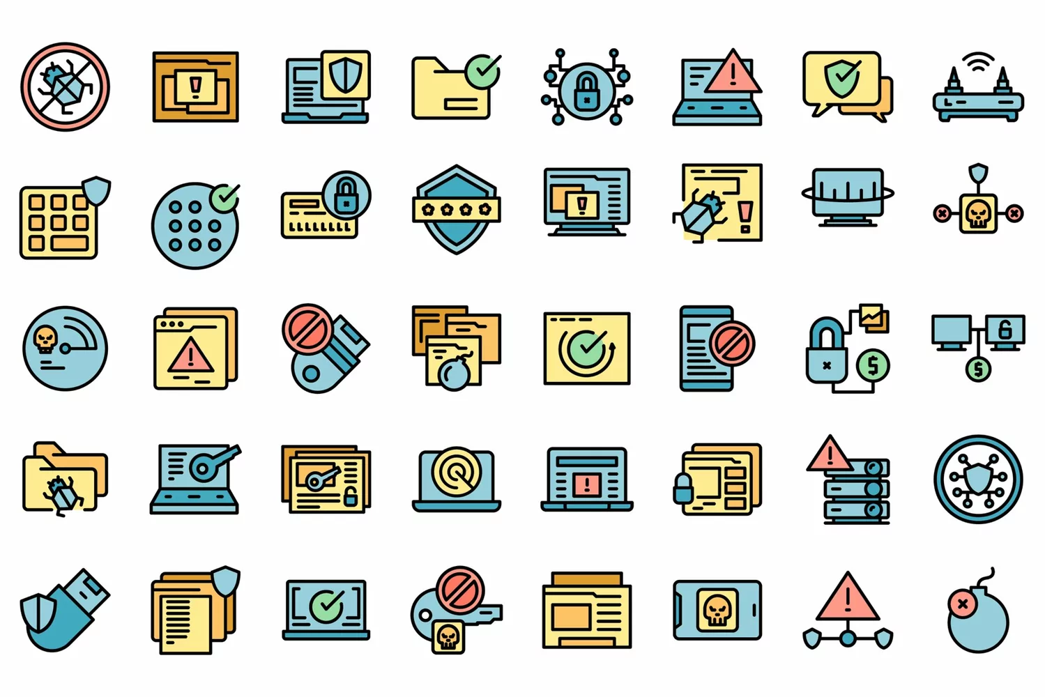 Antivirus icons set outline vector. Malware bug. Cyber data. Formats: JPG, EPS, AI, PSD, PNG, AI