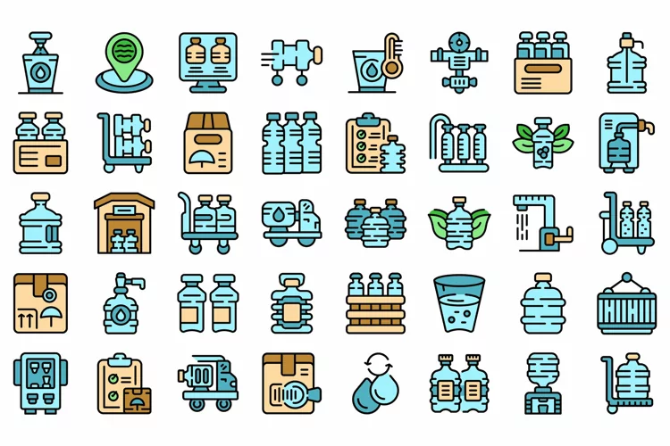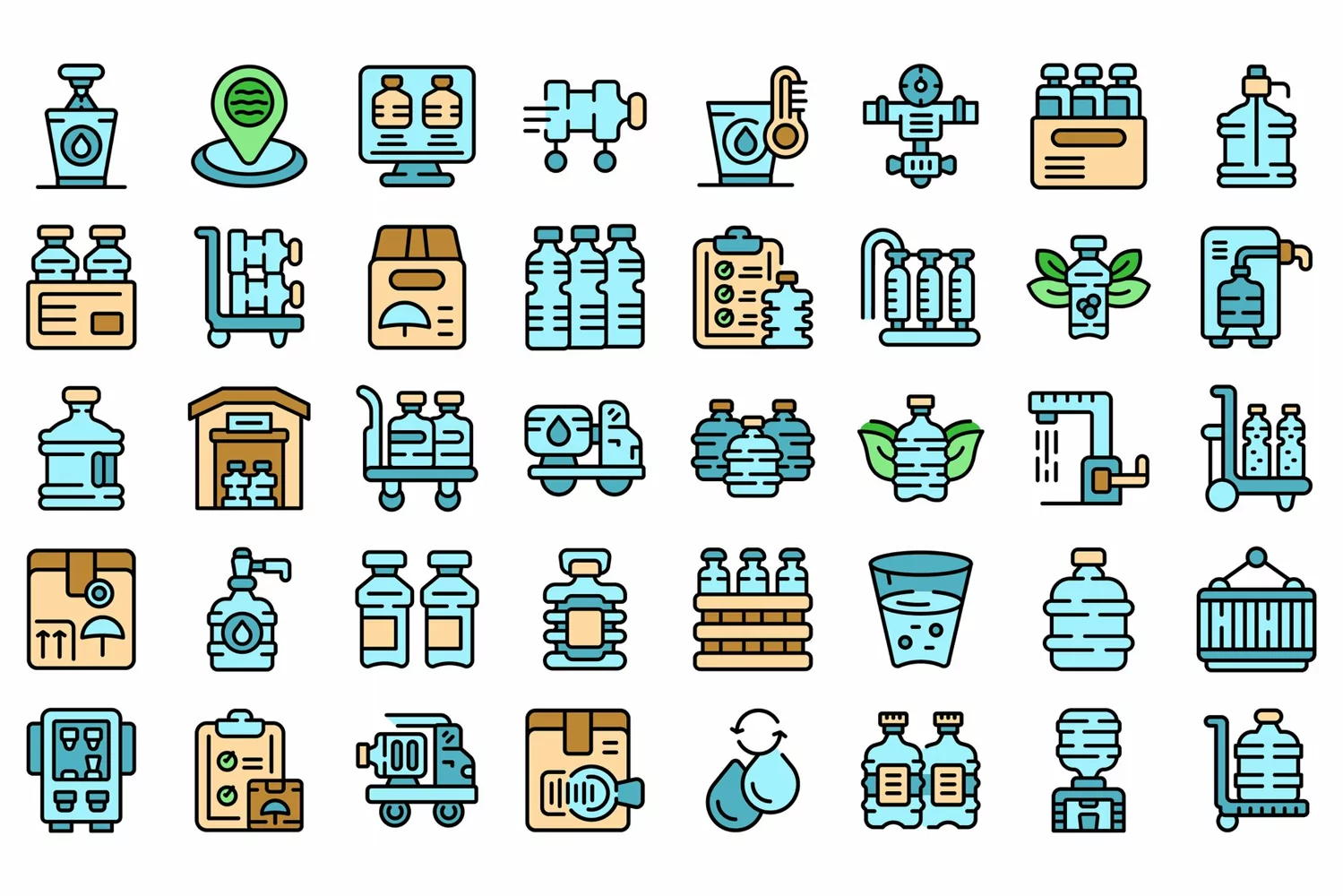 Line Thin Flat Vector Outline Color Icons Set Isolated Water Delivery