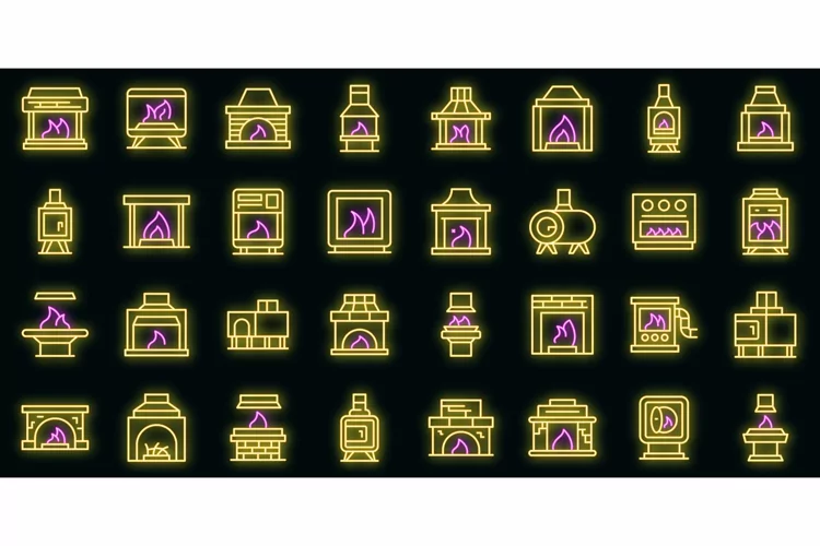 Line Thin Vector Outline Black Neon Icons Set Isolated Furnace