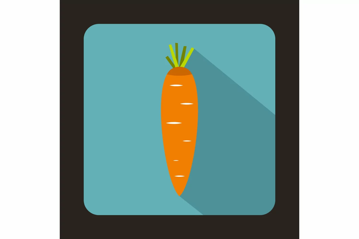 Carrot icon in flat style on a blue background. Formats: JPG, EPS, AI, PSD, PNG, AI