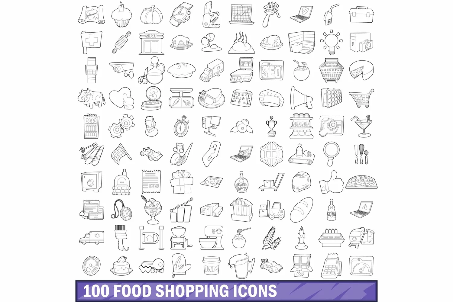 Illustration Line Thin Vector Outline Food Icons Collection Shop Retail