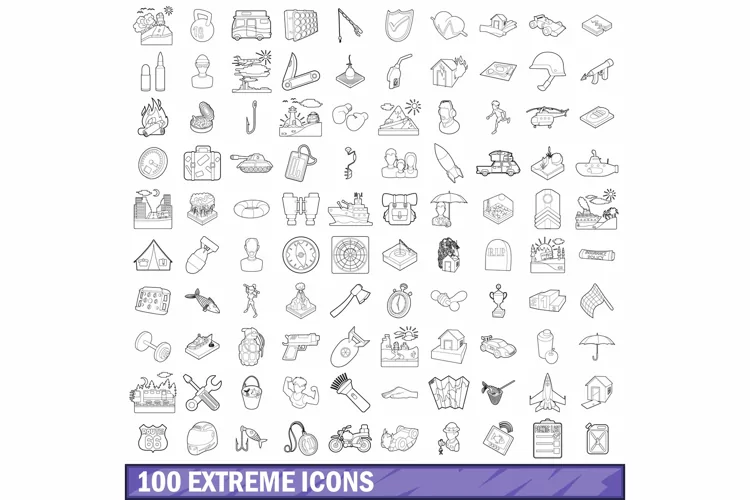 100 extreme icons set, outline style example image 1