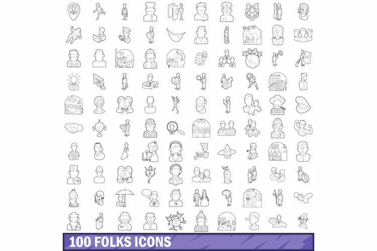 Illustration Hand Character Line Thin Vector Outline Folk Design Icons