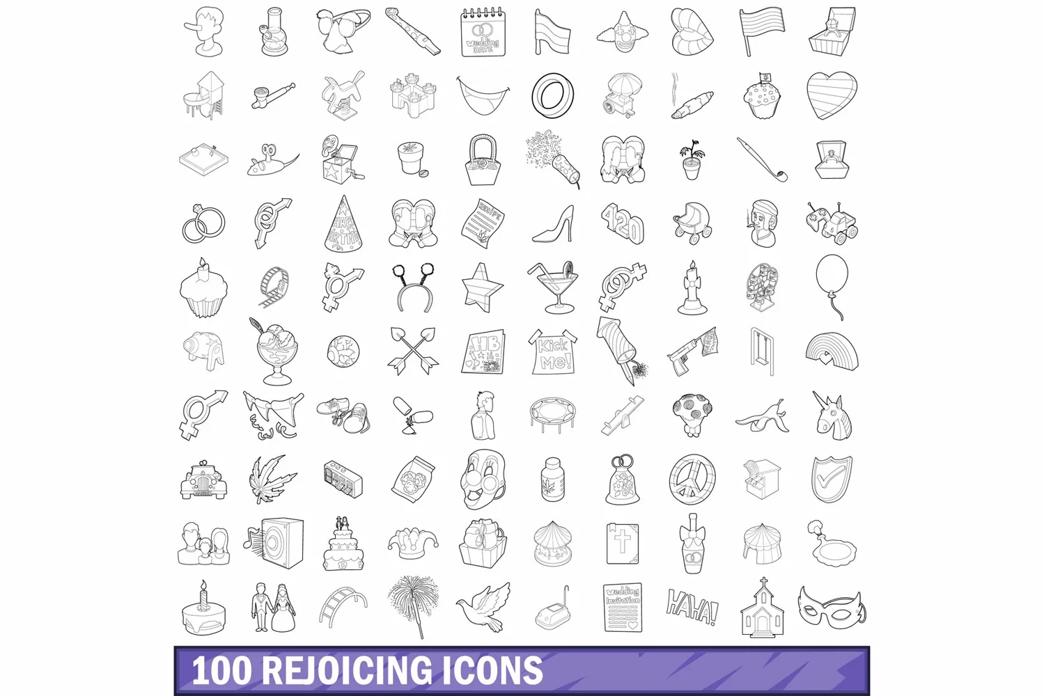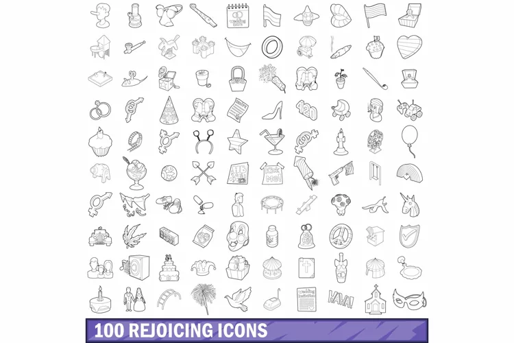 100 rejoicing icons set, outline style example image 1