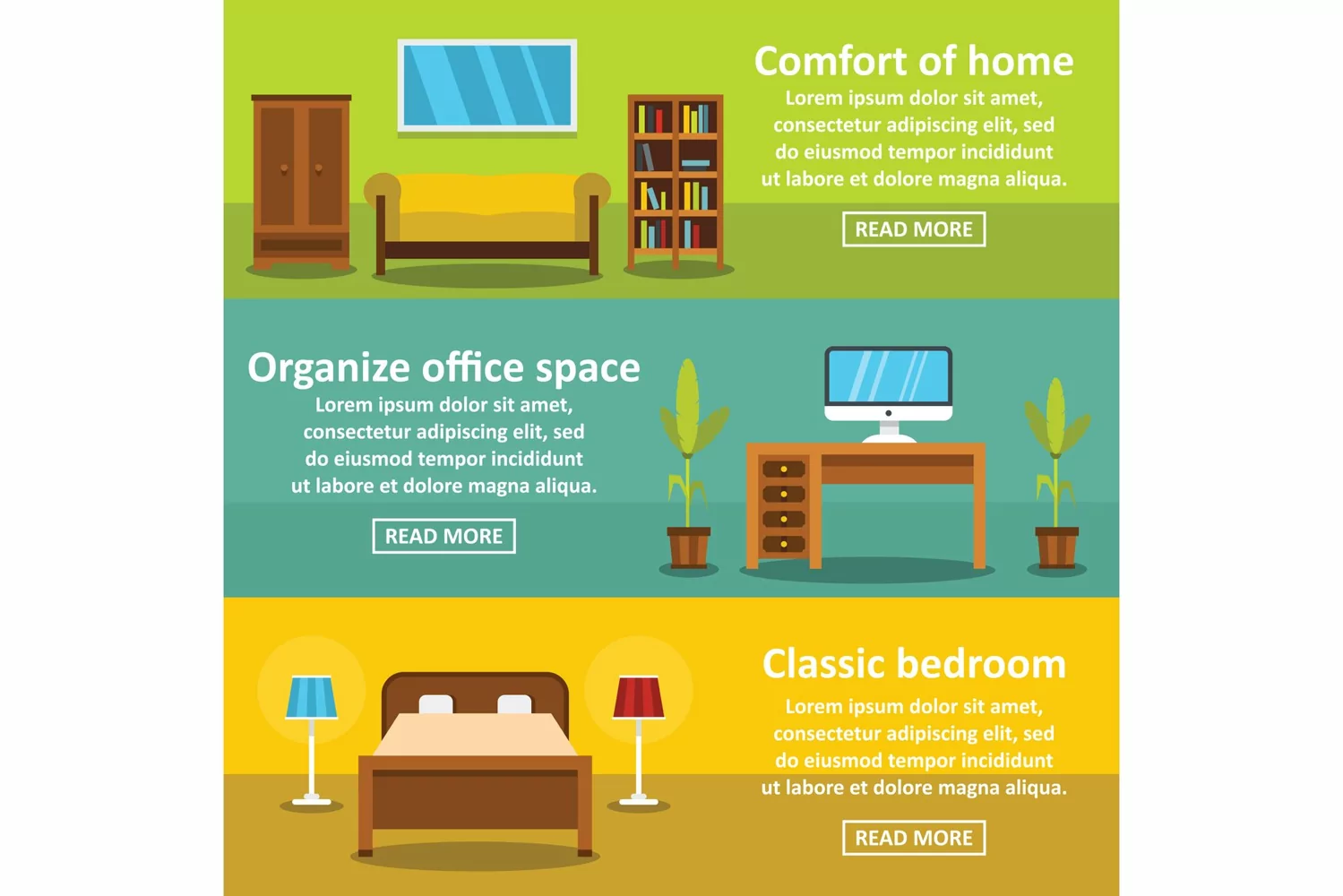 Similar Design Products to Interior comfort banner horizontal set, flat style