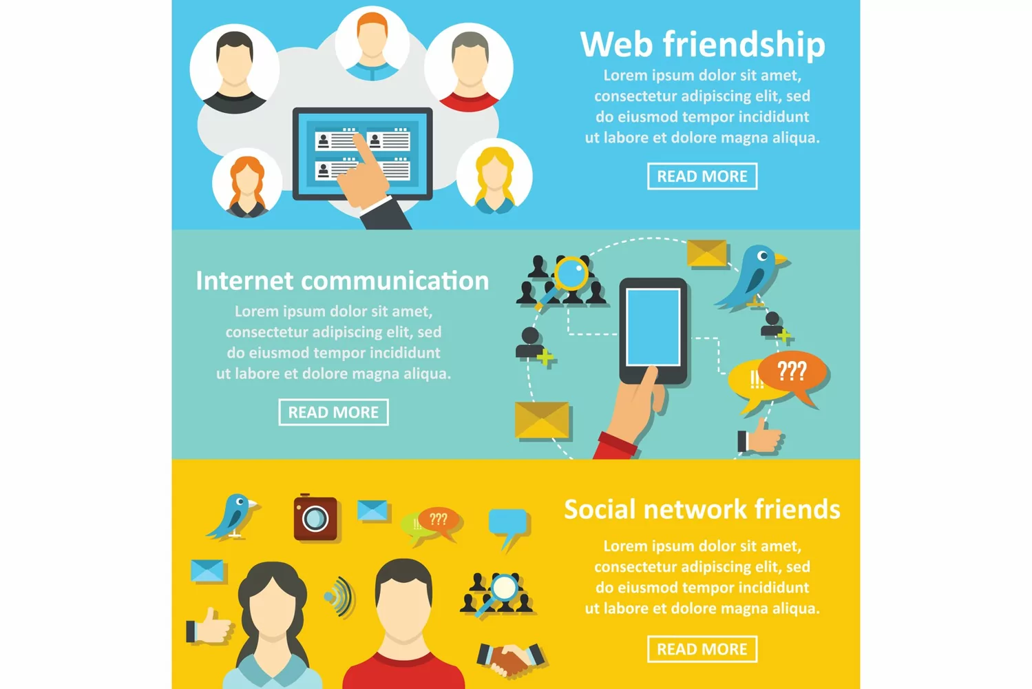 Illustration Flat Vector Banner Communication Media Colorful Color Set Network
