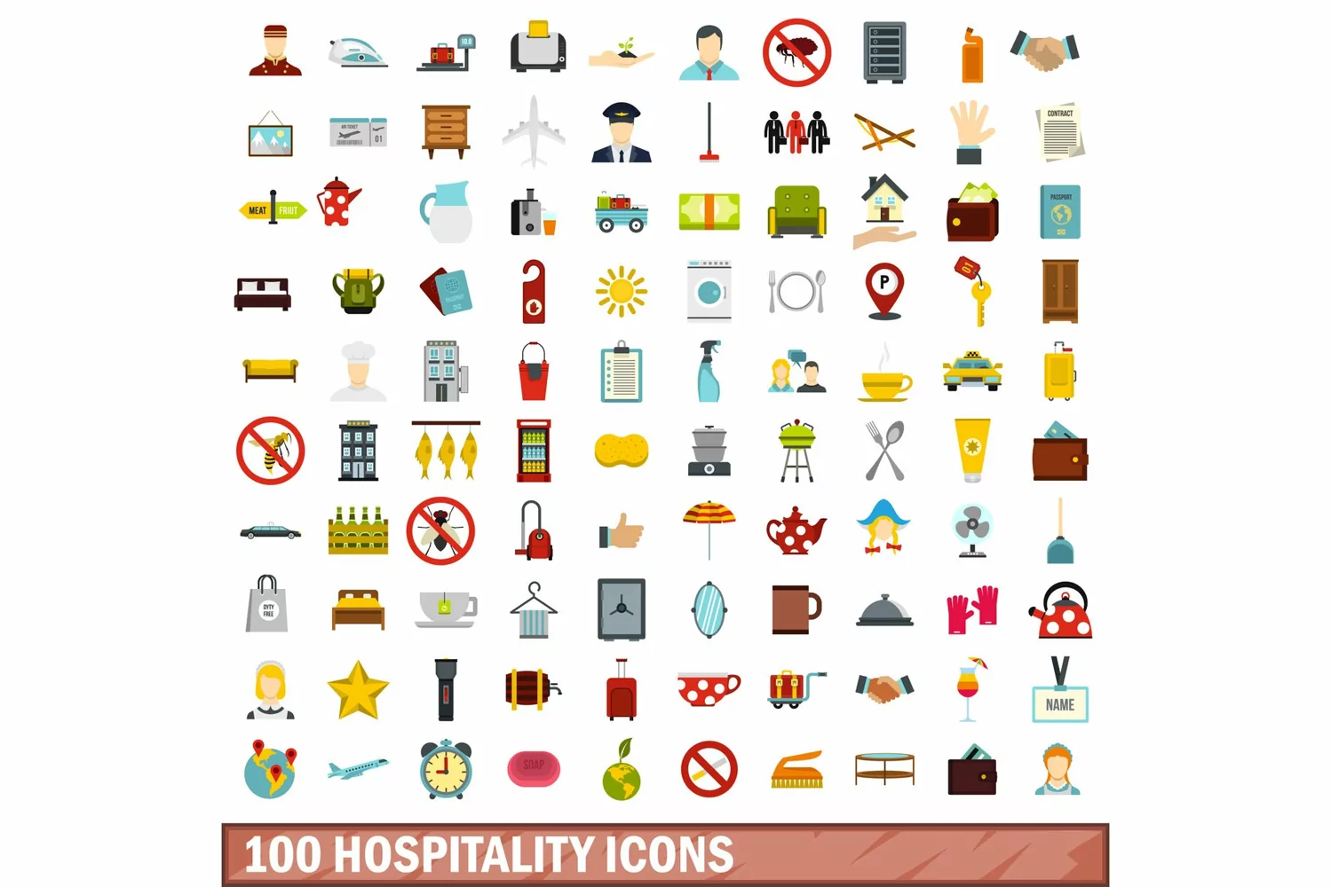 Illustration Flat Vector Food Icons Travel Collection Bag Set Hotel