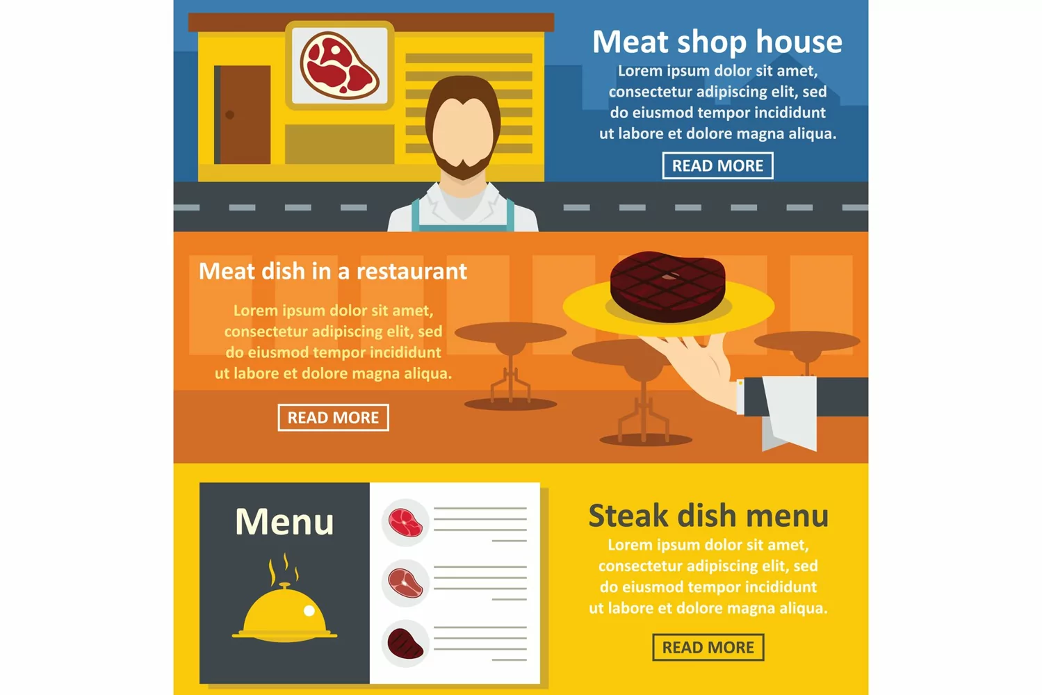 Similar Design Products to Meat reataurant banner horizonatal set, flat style