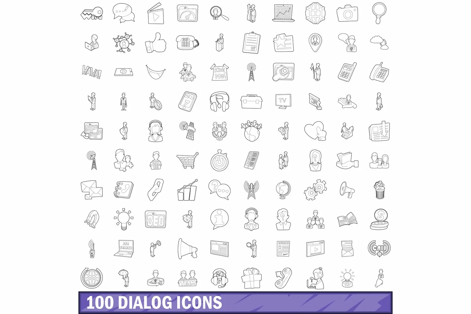 100 dialog icons set, outline style