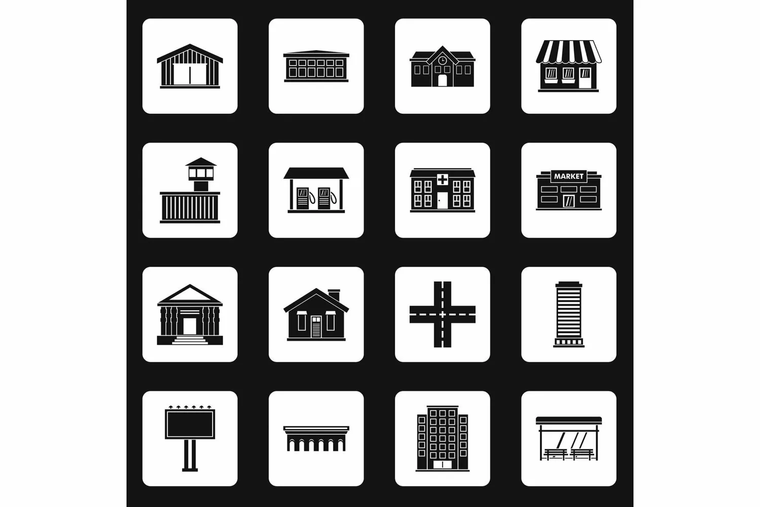 Illustration Vector Simple Icon Set City Hospital Billboard Skyscraper Railway
