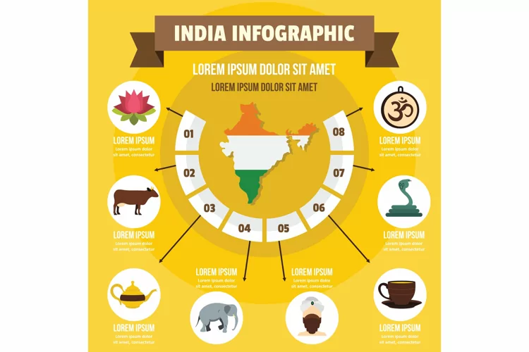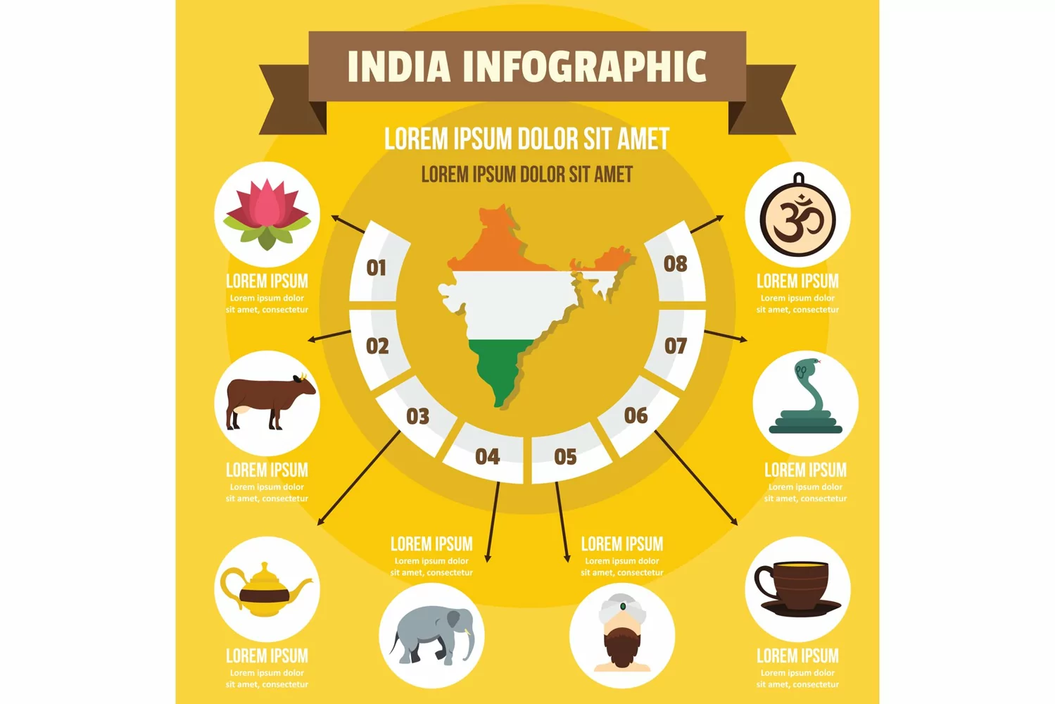 India infographic banner concept. Flat illustration of India infographic vector poster concept for web