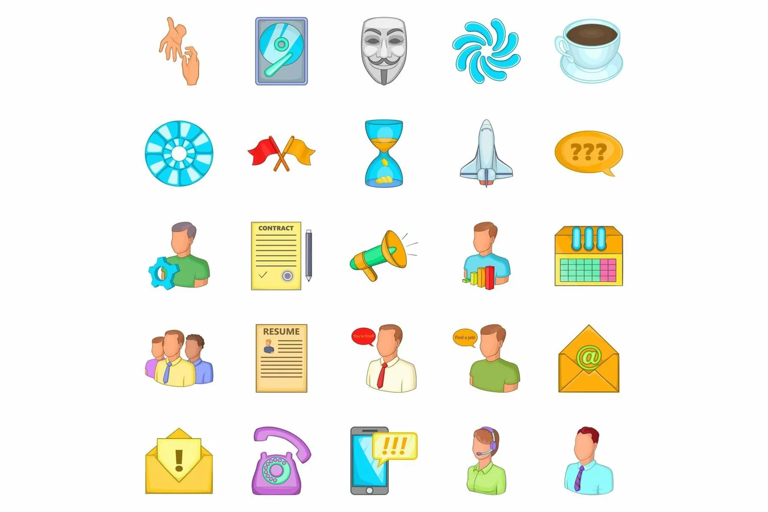 Business direction icons set. Cartoon set of 25 business direction vector icons for web isolated on white background