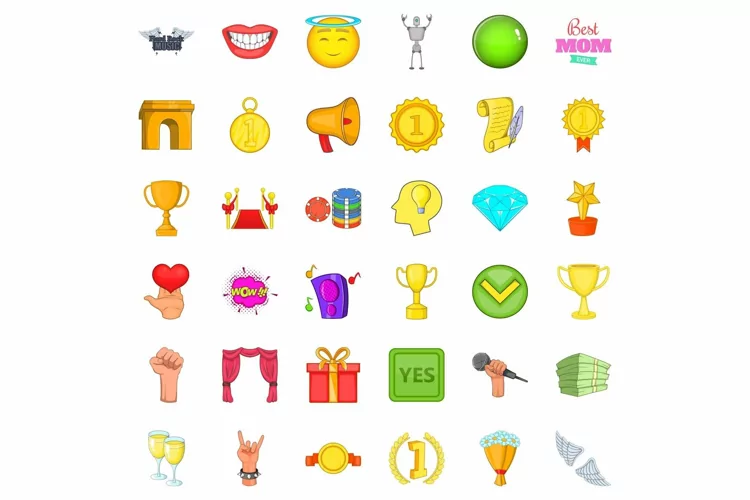 Winning cup icons set. Cartoon style of 36 winning cup vector icons for web isolated on white background