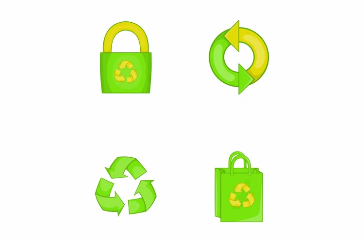 Recycle material icon set. Cartoon set of recycle material vector icons for your web design isolated on white background