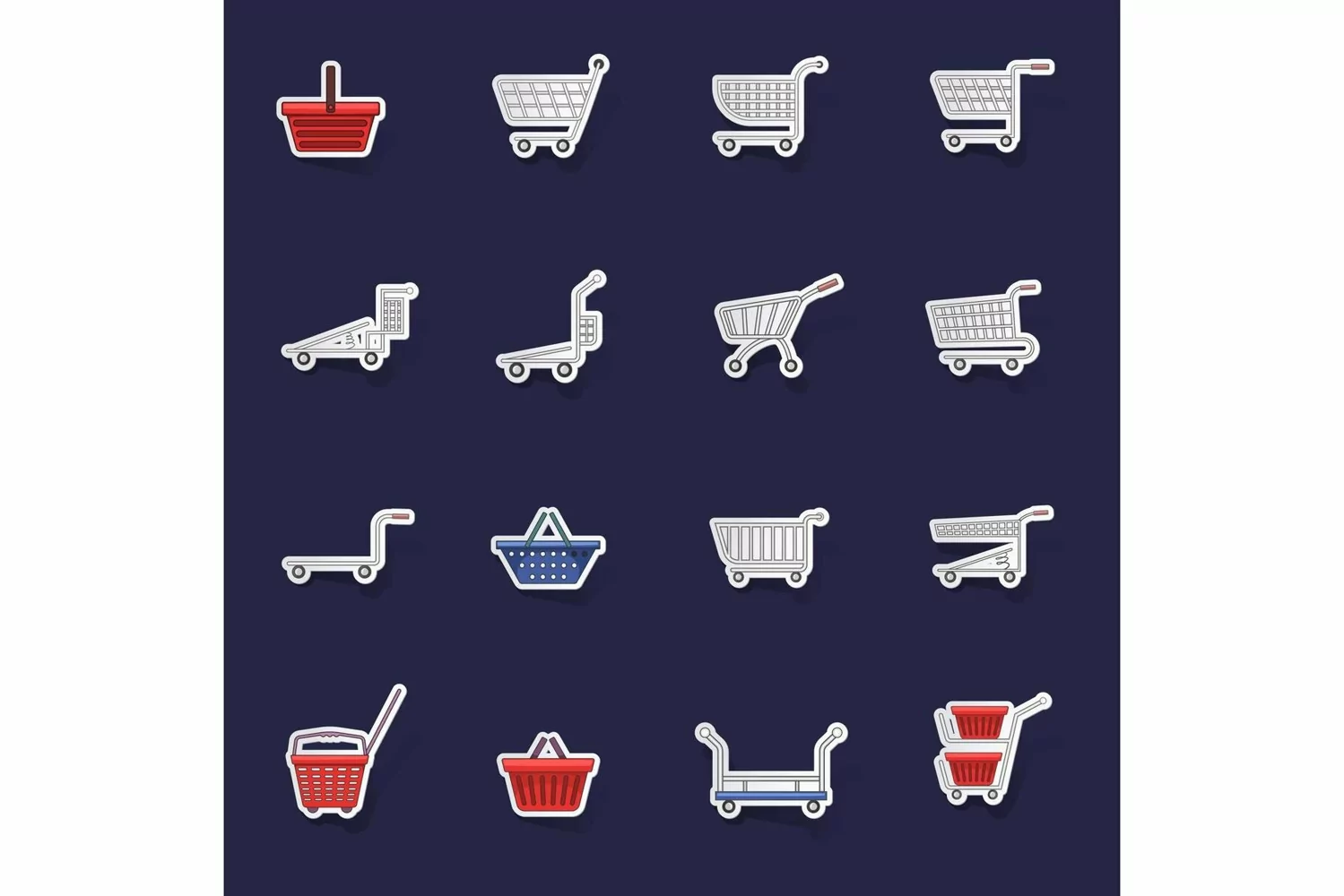 Shopping cart icons set vector sticker example image 1