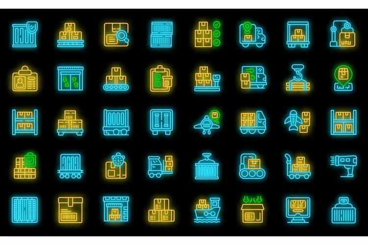 Loading of goods icons set vector neon