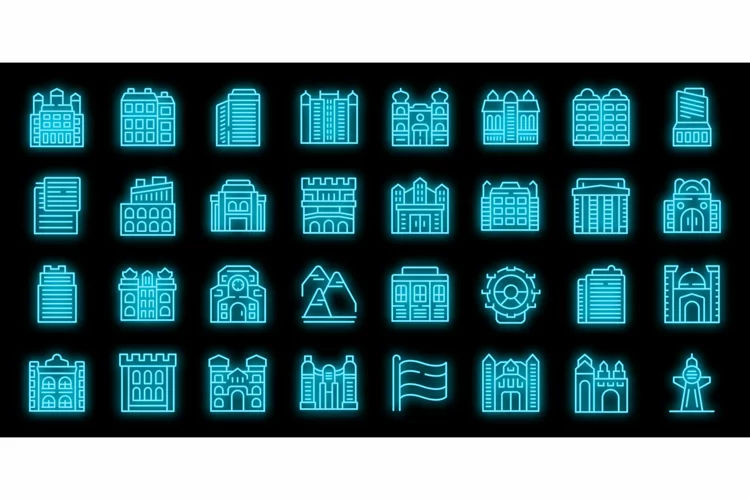 Line Thin Vector Outline Black Neon Icons Set Isolated Vienna