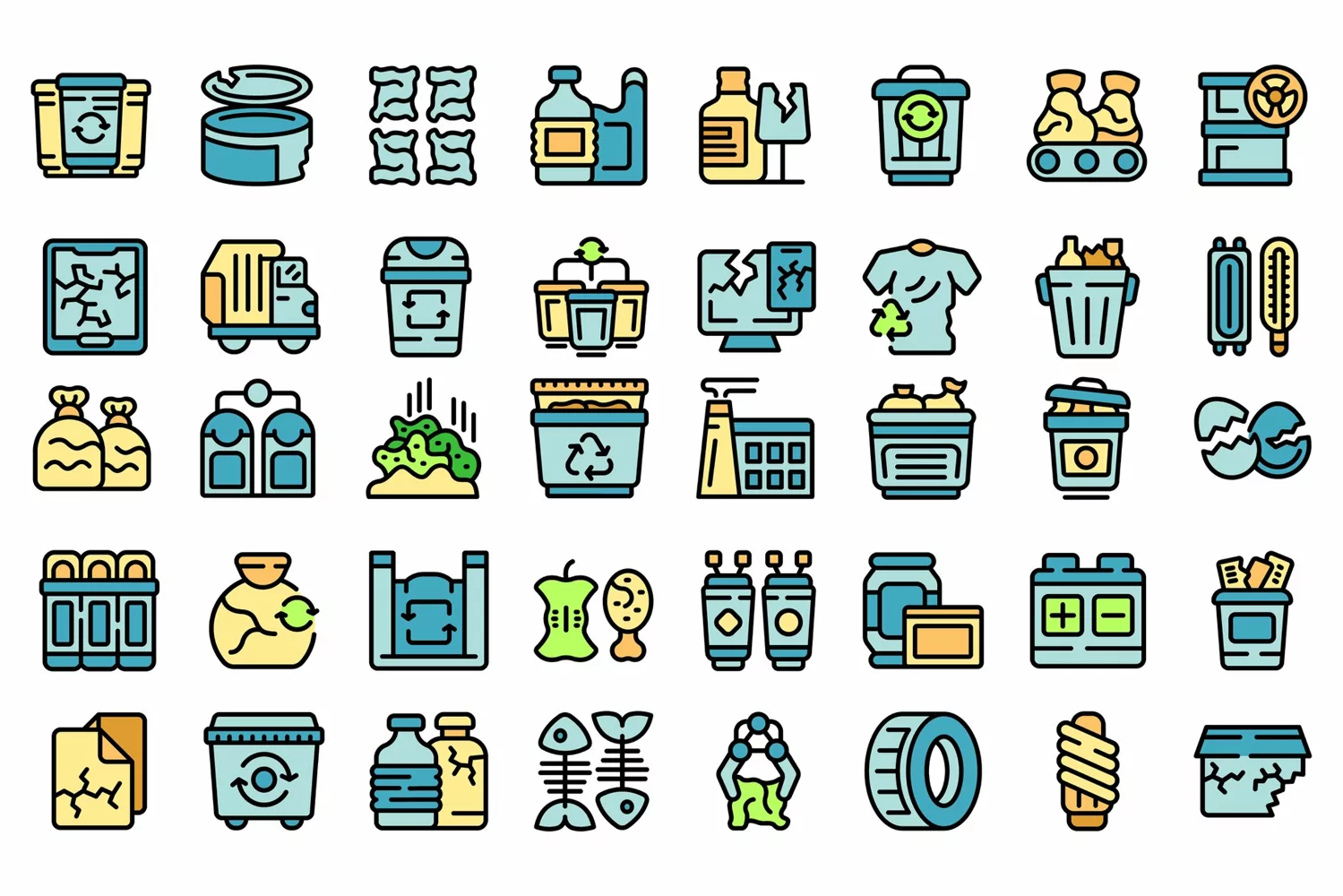 Line Thin Flat Vector Outline Color Icons Set Isolated Wastesorting
